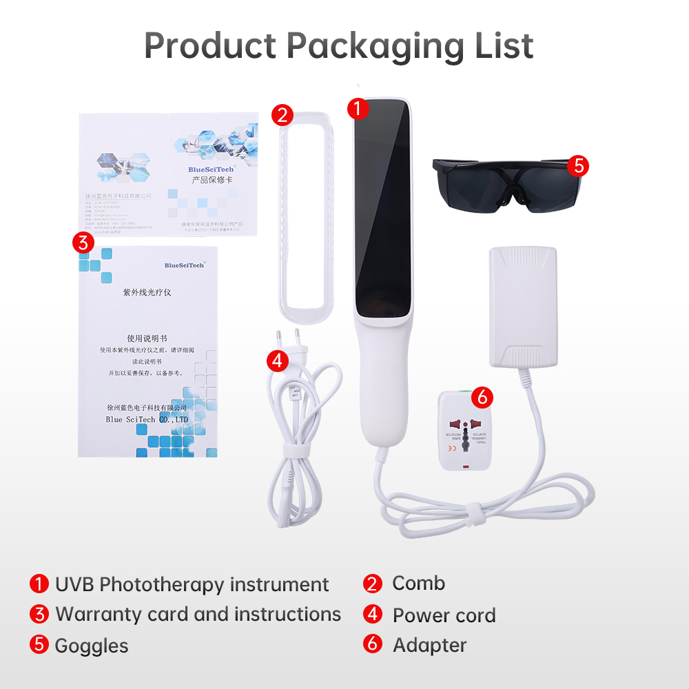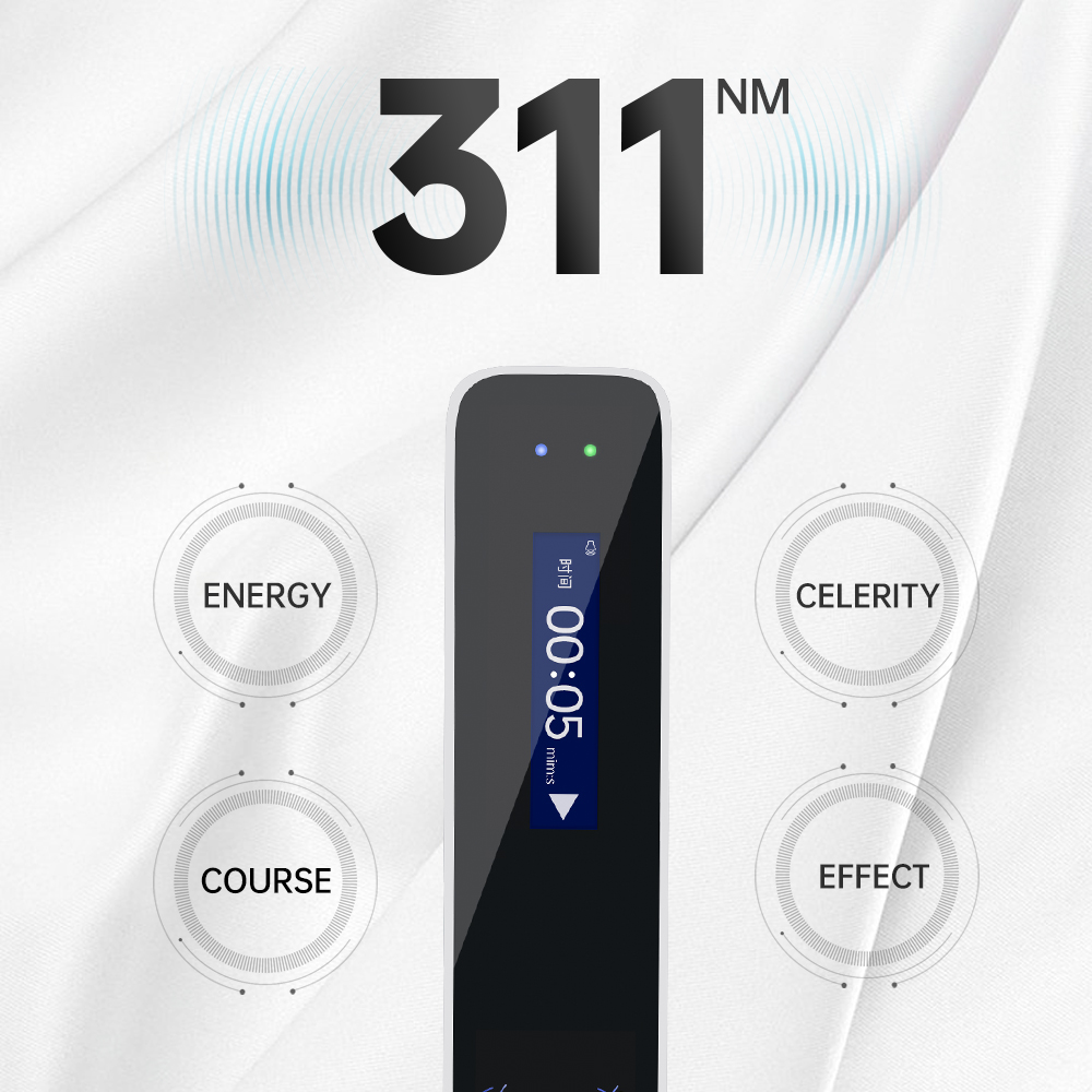 Hinweise: geeignet bei Vitiligo, Psoriasis, Pityriasis rosea, Ekzemen und anderen Hauterkrankungen